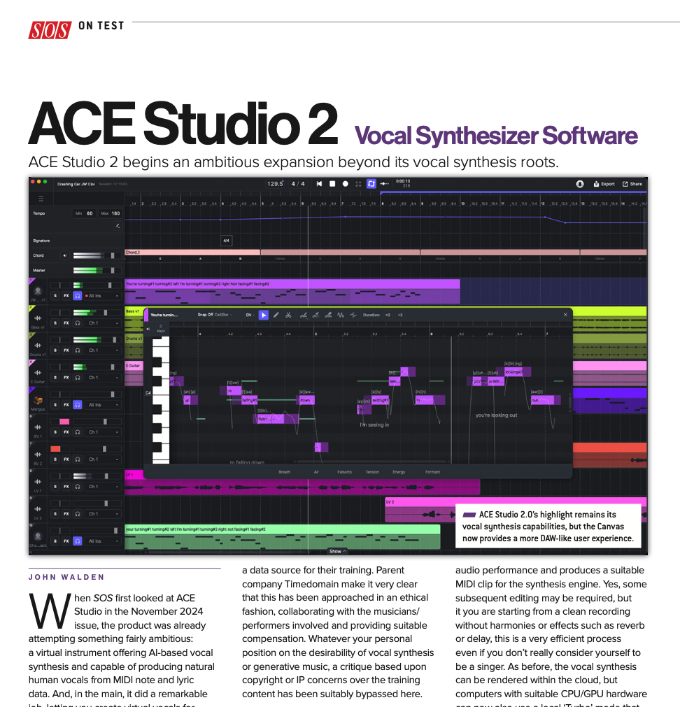 Vocal synthesis has come a long way over the last three years. ACE Studio has been part of that revolution but, with v.2.0 of the software now released, Timedomain have spread their wings a little bit further with the software’s feature set. With AI-based music generation, stem splitting and an interesting take on a new virtual instrument concept, this is an ambitious upgrade.