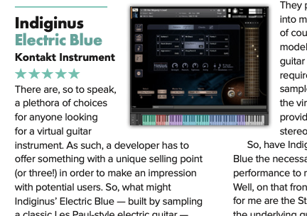 The world is not short of sample-based virtual guitar options. However, Indiginus’ Electric Blue manages to provide a rather nice sonic twist on the concept in a friendly Kontakt library format. Take a deeper peak via the SOS review here….