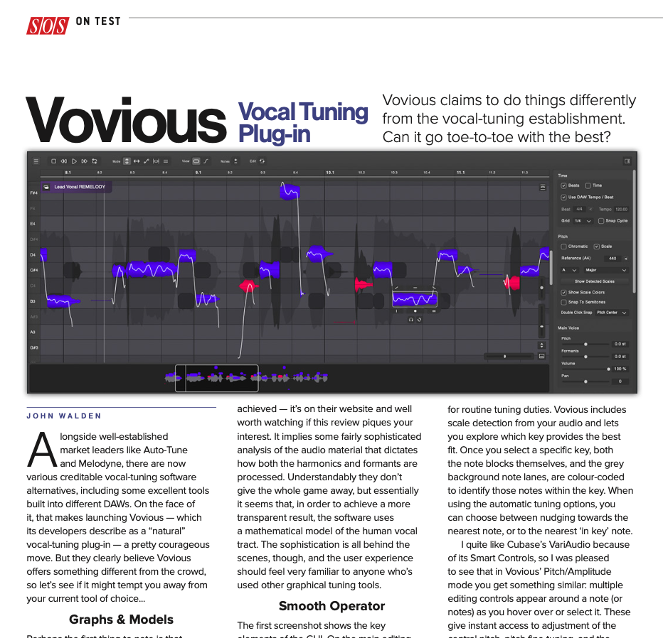 However, I do think they might have a serious competitor in Vovious. It is perhaps more akin to Melodyne in terms of mode of operation (it’s a pitch editing tool rather than offering a real-time automatic pitch correction option like AutoTune)…. but it is truely impressive, both in the transparency and quality of the pitch shifting that’s possible but also in the design of the UI and it’s toolset.