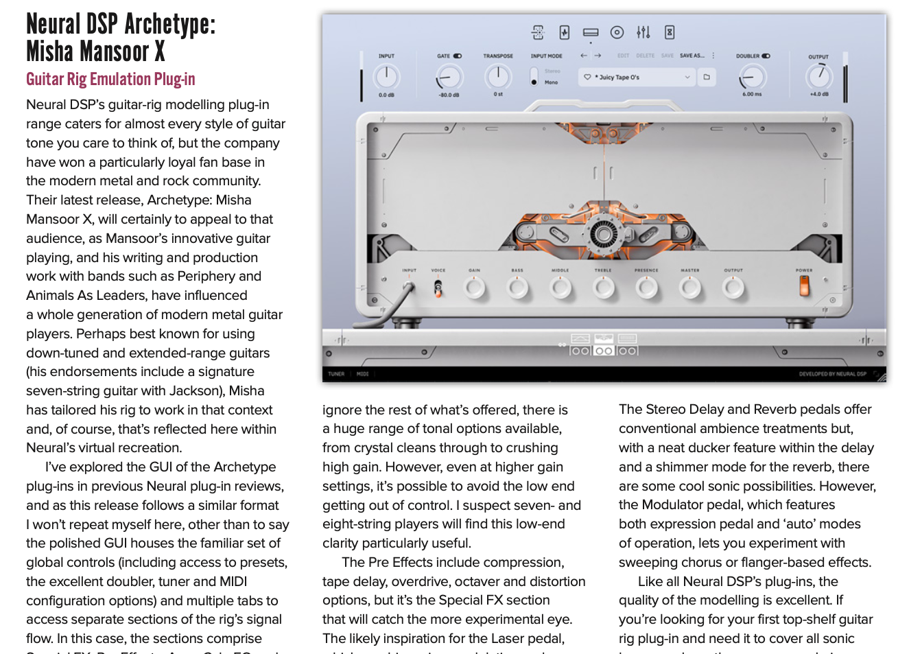 Neural DSP have very quickly climbed to the top table in terms of virtual guitar rig modelling. Their Archetype series features some amazing collaborations with artists and the latest of these is with Misha Mansoor. Known for his innovative guitar work and production in various metal contexts, the plugin goes from super clean to crushing metal.